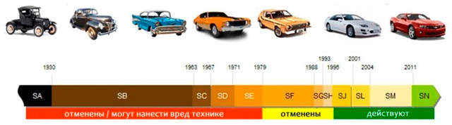 Класифікаційна система, розроблена фахівцями API в результаті довгих і кропітких лабораторних досліджень, ділить моторні масла по сфері застосування на: