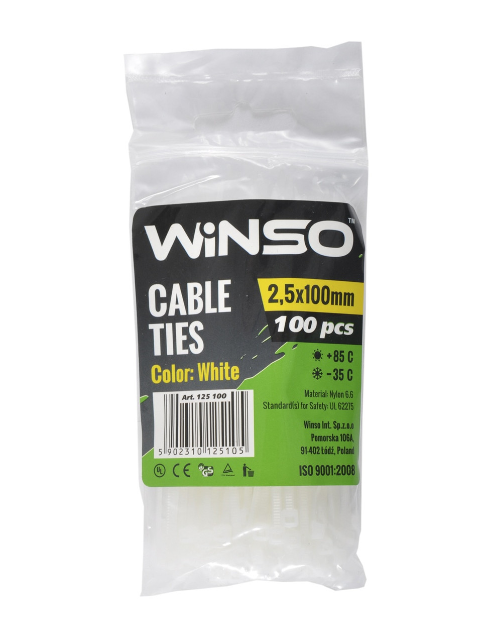 Хомути Winso 125100 - це надійний та зручний спосіб фіксації та організації кабелів та проводів у виробництві, вдома або офісі. Виготовлені з високоякісного нейлону 6,6, ці хомути володіють низьким коефіцієнтом тертя, що робить їх економічним, швидким і надійним засобом для кріплення та фіксації різноманітних предметів.
